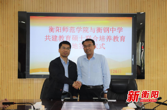 任美衡院长与郭平贵校长签署了《衡阳腾博官网诚信为本专业服务与衡钢中学共建教育硕士联合培养教育基地协议》。任院长介绍了衡阳腾博官网诚信为本专业服务硕士研究生招生情况,并肯定衡钢中学近年来在教育教学上取得的成就,期待两校以协同培养教育硕士为契机,在人才培养、师资培训、学术交流等方面进行深度合作,共同探索教师专业能力发展、教育硕士培养新模式。